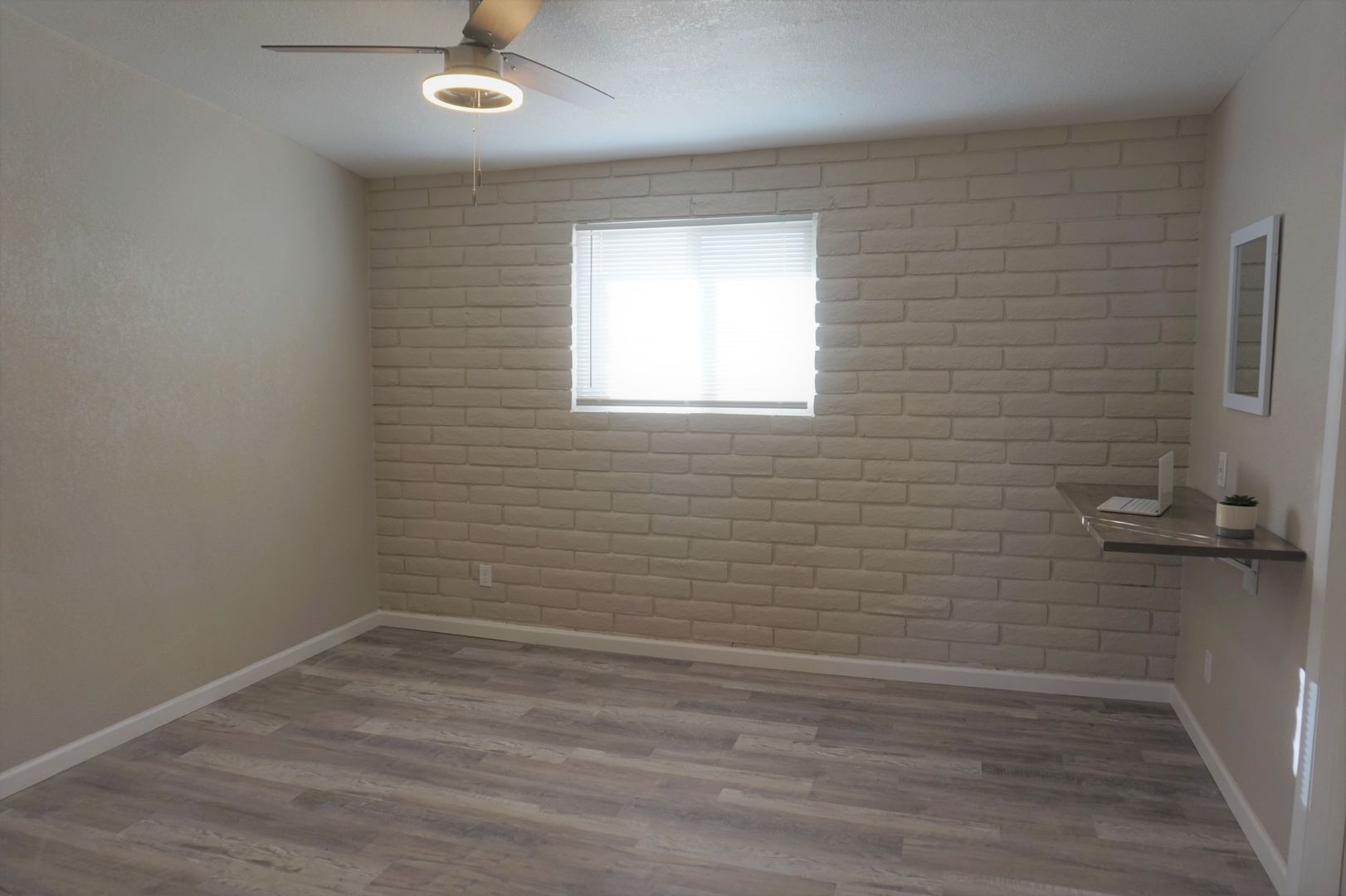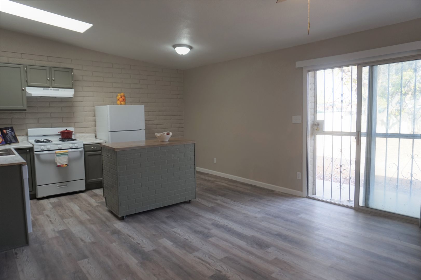 216 N Canyon drive is a 1 bedroom, 1 bathroom newly remodeled apartment. The kitchen includes a dishwasher, refrigerator, and moveable butcher block countertop island. The living room features a stylish barn door and stainless steel fan. The bedroom has a built in desk, dual closets, one of which is a walk-in-closet, and a stainless steel ceiling fan. The home is cooled by an evaporative cooler. Small pets will be considered with an additional deposit. Water and trash is included in the rent amount. No yard work required.
