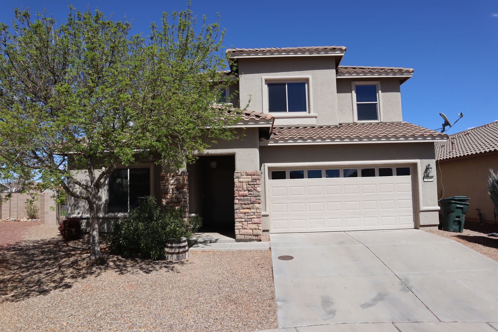 This spacious 4 bedroom and den!, 2.5 bathroom home with 2522 SQFT in Sierra Vista, AZ offers a variety of desirable amenities including a formal dining area, family room, built in 2009 and a large master suite. The kitchen features granite countertops, a pantry, breakfast bar, and modern appliances such as a refrigerator, electric range, dishwasher, and built-in microwave. Enjoy the beautiful views from the balcony or covered patio, and stay comfortable with central air conditioning and ceiling fans throughout the home. With a tile roof, dual pane windows, block wall, and a 2 car garage, this 2 story house is both stylish and practical. Don't miss out on this fantastic property - contact Wayne Lewis at 520-266-2023 or visit www.teambradleyproperties.com for more information.