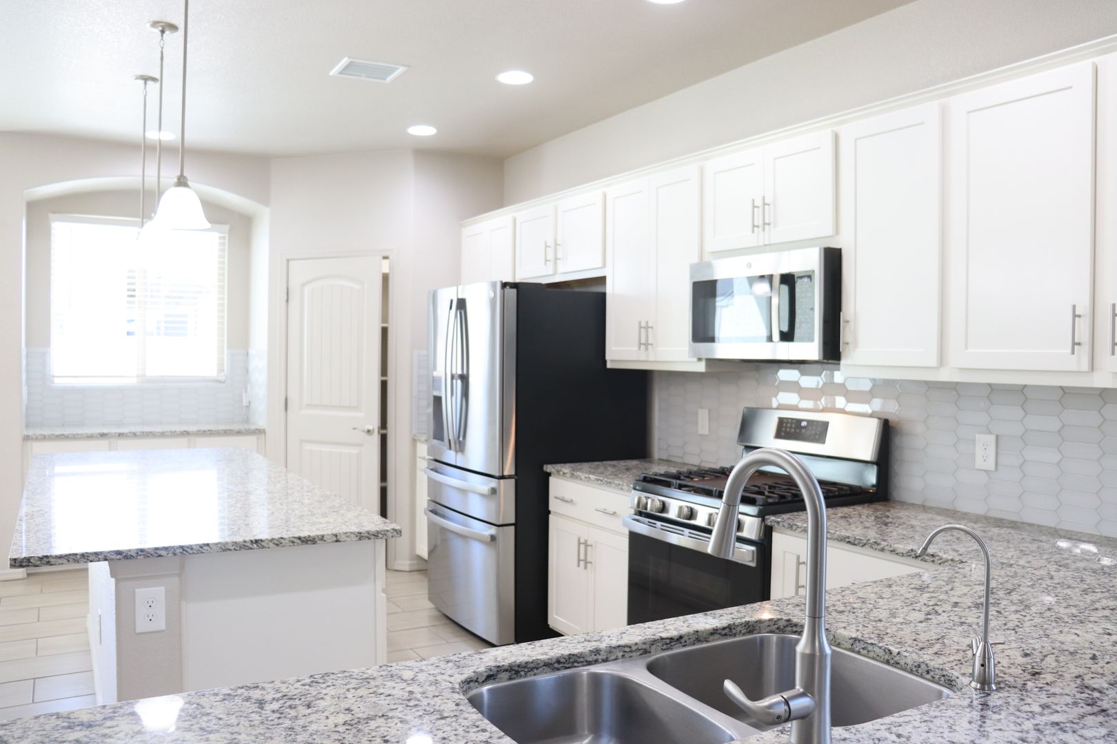 Discover this spacious 4-bedroom, 2-bath home in Sierra Vista, AZ, featuring an open floor plan that connects the formal living room, family room, and kitchen with granite countertops, stainless steel appliances, and a breakfast bar. The primary suite includes an en suite bathroom with a walk-in shower, dual sink vanity, garden tub, and his-and-her walk-in closets. Additional highlights include ceiling fans, a pantry, large laundry room with extra space, water softener, central air conditioning, covered patio, enclosed backyard, and a 2-car garage. For more information, contact 520-459-1222 or visit www.teambradleyproperties.com.