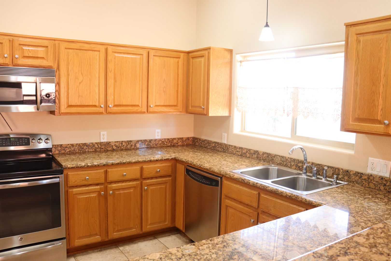 Welcome to this spacious 4-bedroom, 2-bathroom home located in the desirable Mesa Verde Subdivision of Sierra Vista, AZ. This home boasts an open floor plan, perfect for entertaining friends and family. The kitchen features stunning granite countertops, stainless steel appliances, a microwave, dishwasher, and an electric range. You'll love the convenience of the large kitchen pantry, providing ample storage space for all your culinary needs. Cozy up by the gas fireplace on chilly evenings or enjoy the cool breeze from the ceiling fans on warmer days. The large primary suite bath offers a walk-in shower, a relaxing garden tub, a dual sink vanity, and a spacious walk-in closet. With a three-car garage, you'll have plenty of space for parking and storage. The enclosed back yard provides privacy and security, while the covered patio is the perfect spot for outdoor gatherings or simply enjoying a cup of coffee in the morning. Don't miss out on the opportunity to make this beautiful home yours.