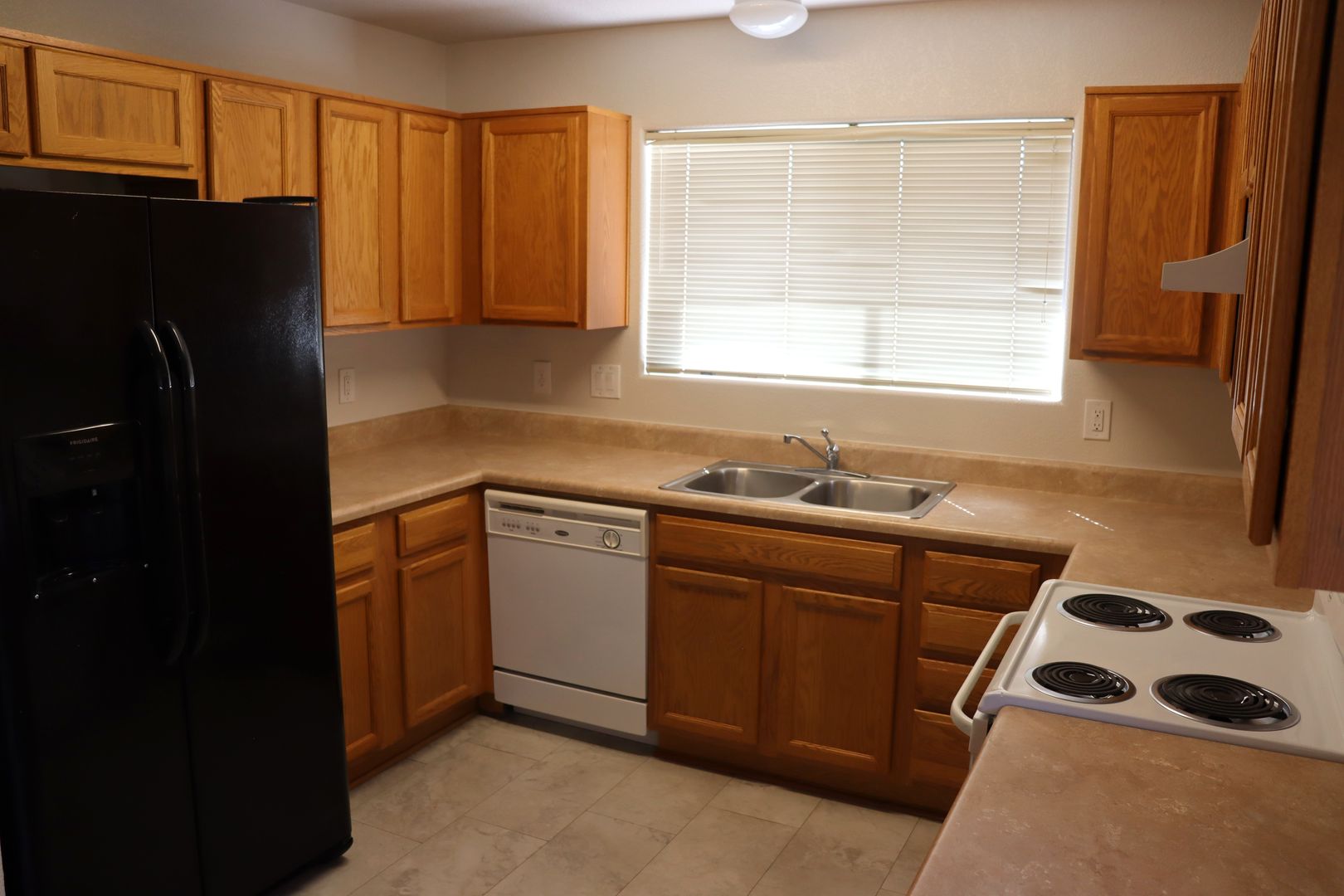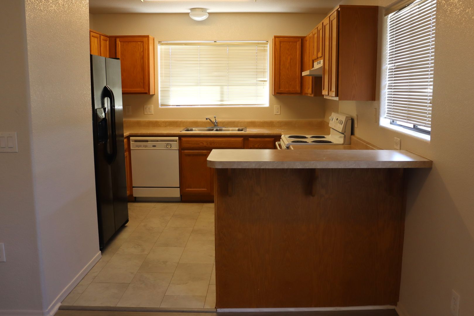 This spacious 3-bedroom, 2-bathroom upstairs apartment offers a comfortable and modern living experience. The kitchen is equipped with essential appliances including a refrigerator, electric range, and dishwasher, making meal preparation a breeze. The apartment is cooled by A/C, ensuring a comfortable environment all year round. The primary bedroom features an en suite bathroom, providing an added level of privacy and convenience. Hard flooring in active areas ensures easy maintenance. Ceiling fans add to the comfort and energy efficiency of the home. For more information, please contact us at 520-459-1222 or visit www.teambradleyproperties.com.